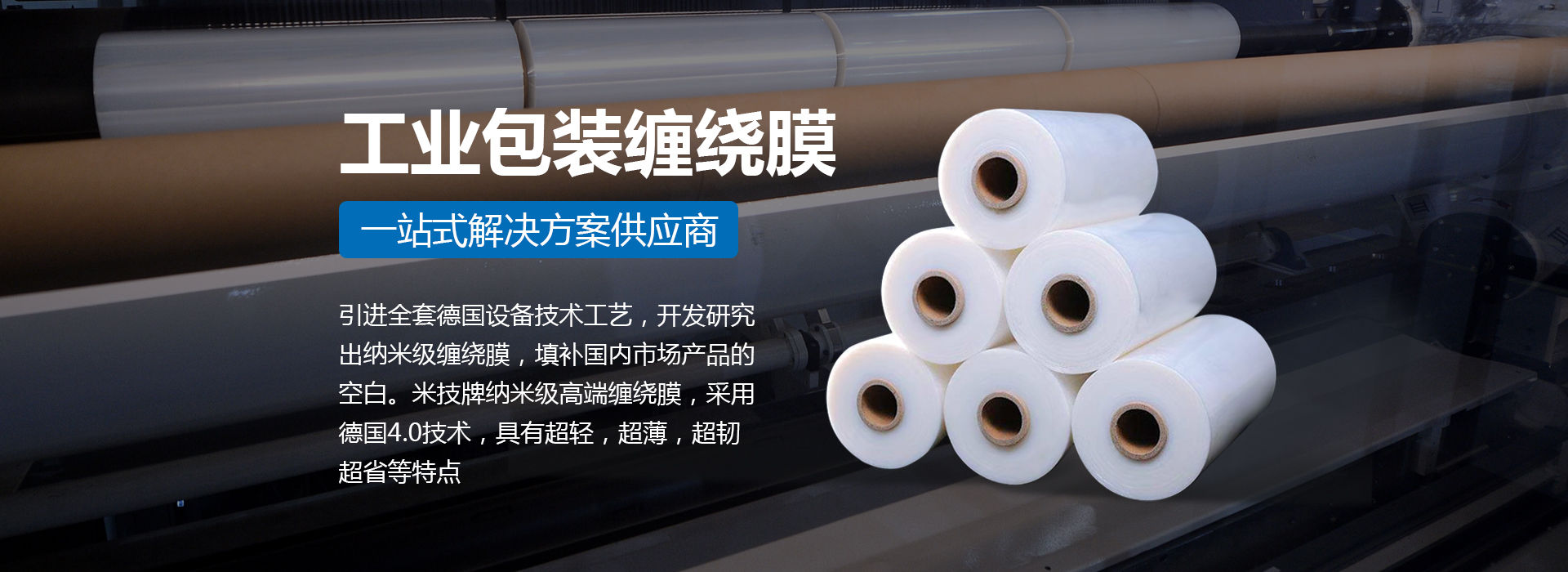 引進(jìn)全套德國(guó)設(shè)備技術(shù)工藝,開(kāi)發(fā)研究出納米級(jí)纏繞膜,填補(bǔ)國(guó)內(nèi)市場(chǎng)產(chǎn)品的空白。米技牌納米級(jí)高端纏繞膜,采用德國(guó)4.0技術(shù),具有超輕,超薄,超韌,超省等特點(diǎn)。
